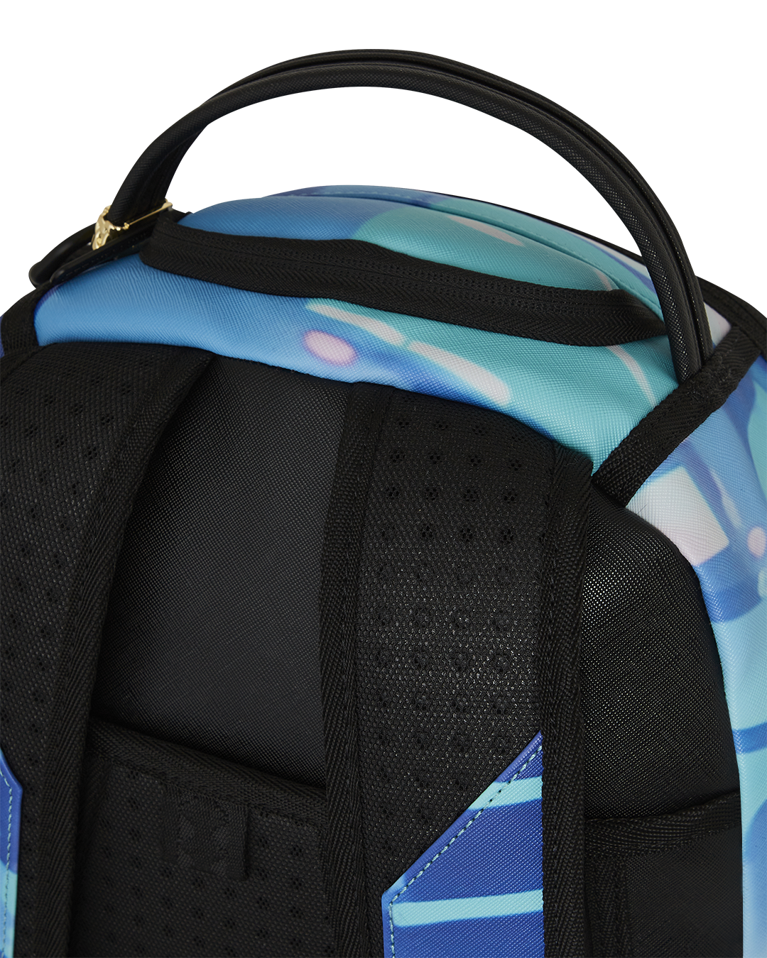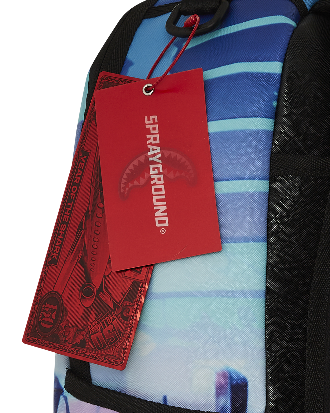 Dimensions: 18" x 6" x 11.5" • Front zipper pocket • Side pockets • Zippered Stash pocket • Separate velour sunglass compartment • Ergonomic mesh back padding • Adjustable Straps for custom sizing • Gold zippers with metal hardware • Metal "Sprayground Authentic" badge • Slide through back sleeve connects to carry-on luggage to free your hands