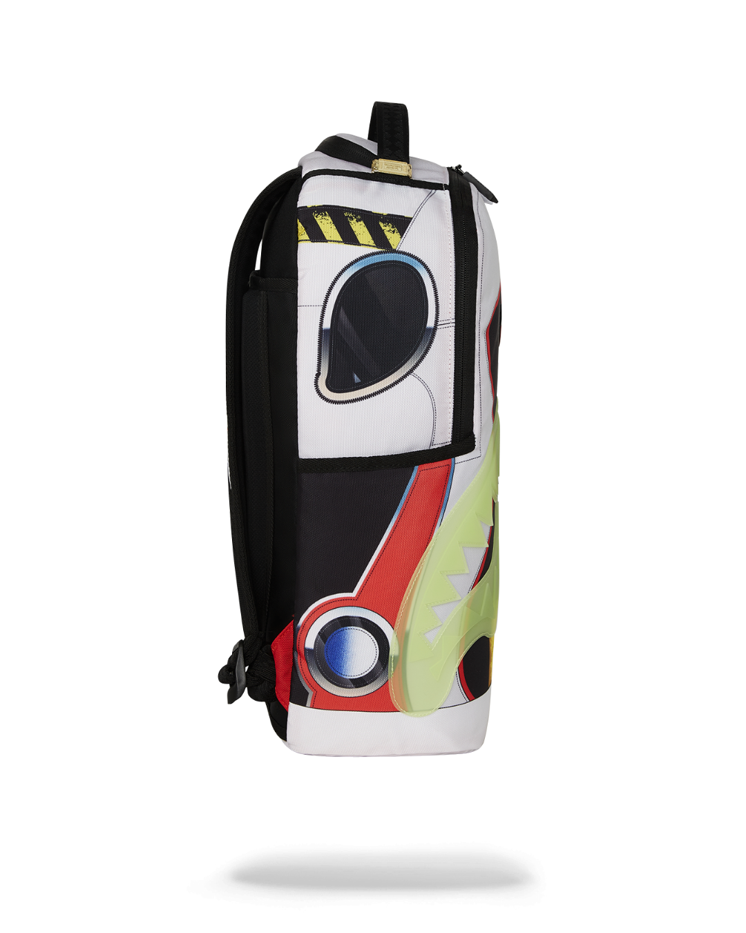 Dimensions: 18" x 6" x 11.5" • Front zipper pocket • Side pockets • Zippered Stash pocket • Separate velour sunglass compartment • Ergonomic mesh back padding • Adjustable Straps for custom sizing • Gold zippers with metal hardware • Metal "Sprayground Authentic" badge • Slide through back sleeve connects to carry-on luggage to free your hands