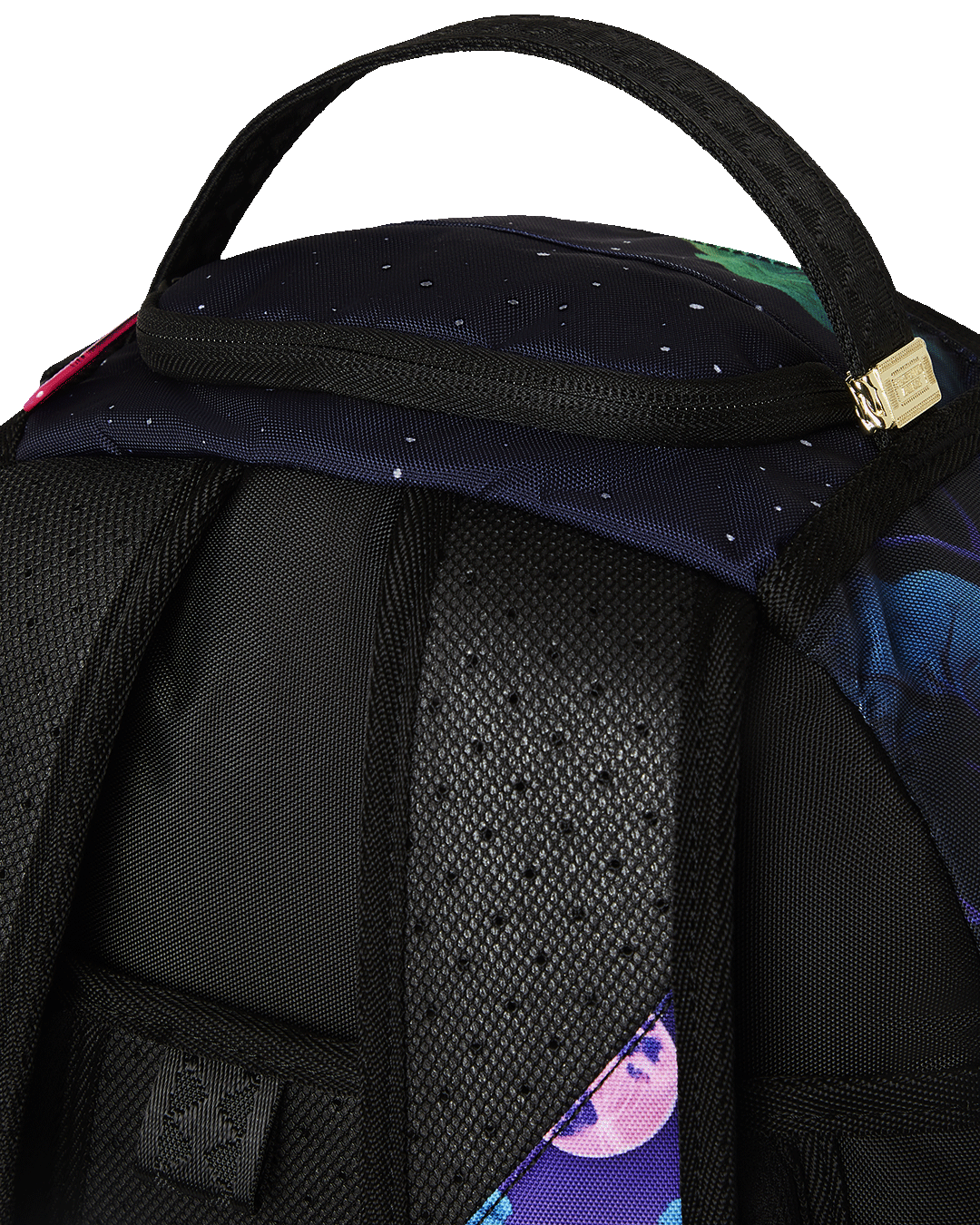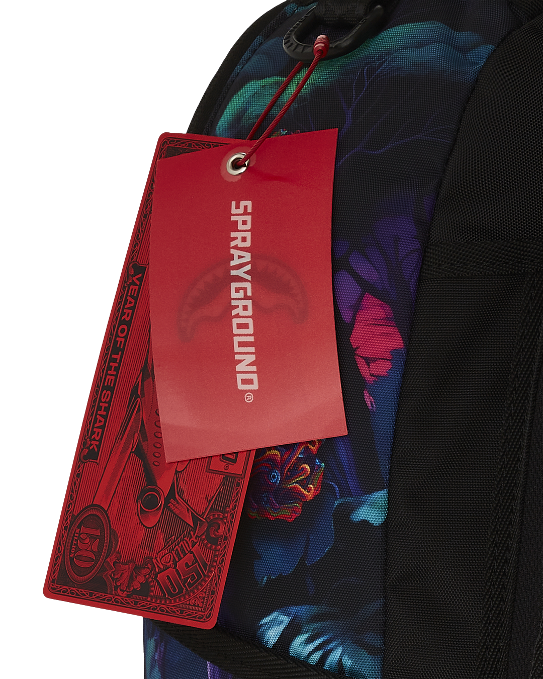 Dimensions: 18" x 6" x 11.5" • Front zipper pocket • Side pockets • Zippered Stash pocket • Separate velour sunglass compartment • Ergonomic mesh back padding • Adjustable Straps for custom sizing • Gold zippers with metal hardware • Metal "Sprayground Authentic" badge • Slide through back sleeve connects to carry-on luggage to free your hands