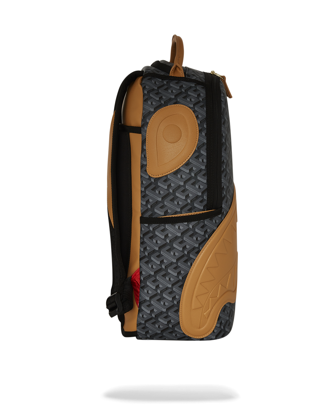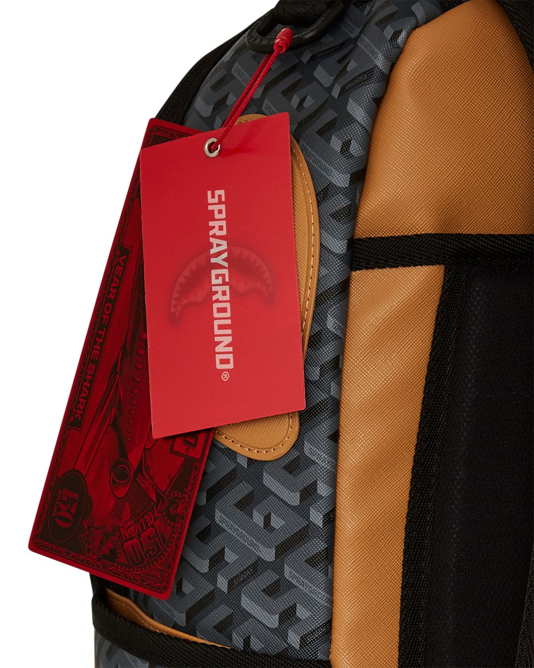 Dimensions: 18" x 6" x 11.5" • Front zipper pocket • Side pockets • Zippered Stash pocket • Separate velour sunglass compartment • Ergonomic mesh back padding • Adjustable Straps for custom sizing • Gold zippers with metal hardware • Metal "Sprayground Authentic" badge • Slide through back sleeve connects to carry-on luggage to free your hands