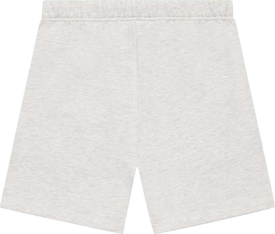 The signature Essentials shorts is updated with a flocked logo treatment inspired by vintage athletic sweats. A shiny Essentials Fear of God logo is on the left leg, and an Essentials rubberized label is stitched on the center front.