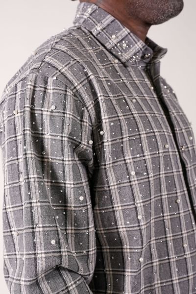 A premium grey flannel designed with a standout “Diamond District” rhinestone and pearl graphic. Comfortable, stylish, and perfect for elevating any streetwear fit.