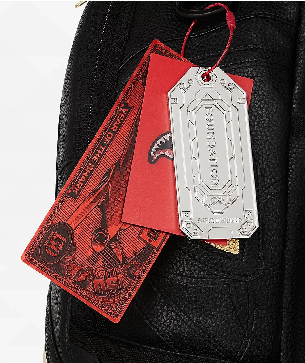 Dimensions: 18" x 6" x 11.5" • Front zipper pocket • Side pockets • Zippered Stash pocket • Separate velour sunglass compartment • Ergonomic mesh back padding • Adjustable Straps for custom sizing • Gold zippers with metal hardware • Metal "Sprayground Authentic" badge • Slide through back sleeve connects to carry-on luggage to free your hands