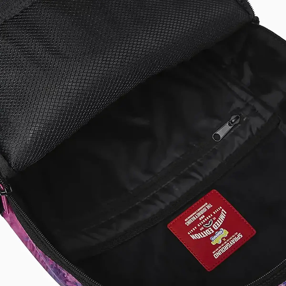 Dimensions: 18" x 6" x 11.5" • Front zipper pocket • Side pockets • Zippered Stash pocket • Separate velour sunglass compartment • Ergonomic mesh back padding • Adjustable Straps for custom sizing • Gold zippers with metal hardware • Metal "Sprayground Authentic" badge • Slide through back sleeve connects to carry-on luggage to free your hands