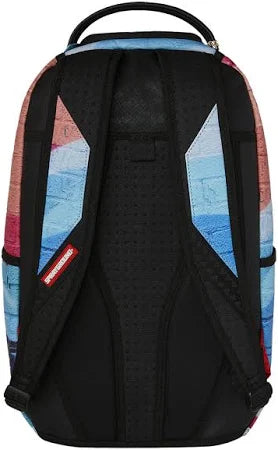 Dimensions: 18" x 6" x 11.5" • Front zipper pocket • Side pockets • Zippered Stash pocket • Separate velour sunglass compartment • Ergonomic mesh back padding • Adjustable Straps for custom sizing • Gold zippers with metal hardware • Metal "Sprayground Authentic" badge • Slide through back sleeve connects to carry-on luggage to free your hands