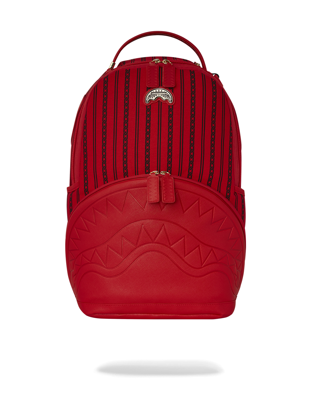 Dimensions: 18" x 6" x 11.5" • Front zipper pocket • Side pockets • Zippered Stash pocket • Separate velour sunglass compartment • Ergonomic mesh back padding • Adjustable Straps for custom sizing • Gold zippers with metal hardware • Metal "Sprayground Authentic" badge • Slide through back sleeve connects to carry-on luggage to free your hands