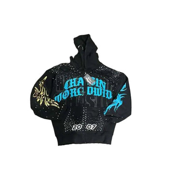Make a bold statement with the Chasin Worldwide Never Stop Rhinestone Zip Up in Black/Red. Designed for standout streetwear style, this piece features eye-catching rhinestone detailing combined with a sleek zip-up design. Crafted from premium materials, it delivers both comfort and durability while elevating your everyday look. Perfect for layering or wearing solo, this zip hoodie brings shine and attitude to any outfit.