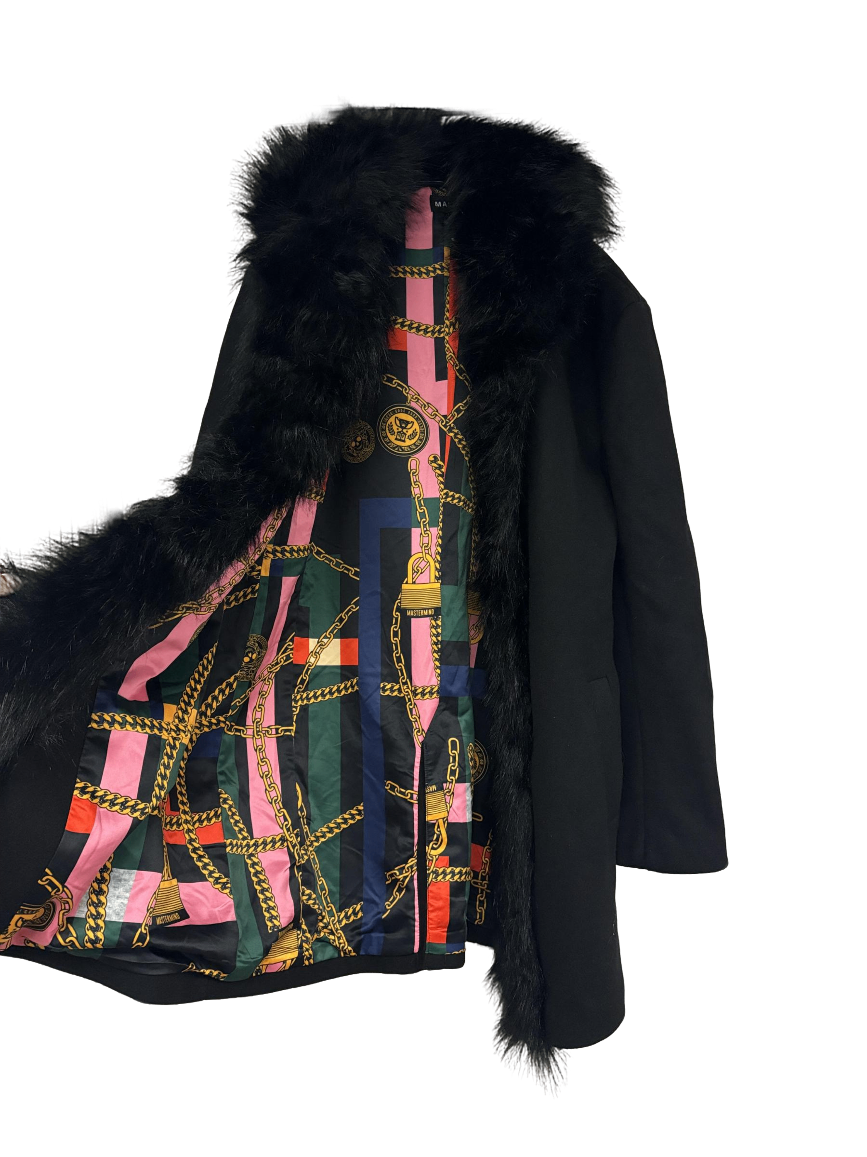 Indulge in luxury with Makobi's Fur Long Coat. Keep warm in style with this elegant long coat, featuring a soft and luxurious fur exterior. The interior is adorned with a unique printed design, adding a touch of sophistication. With pockets for convenience, this coat is the ultimate winter essential.