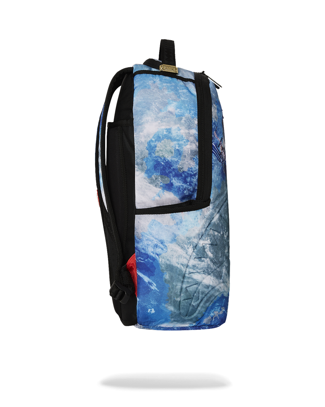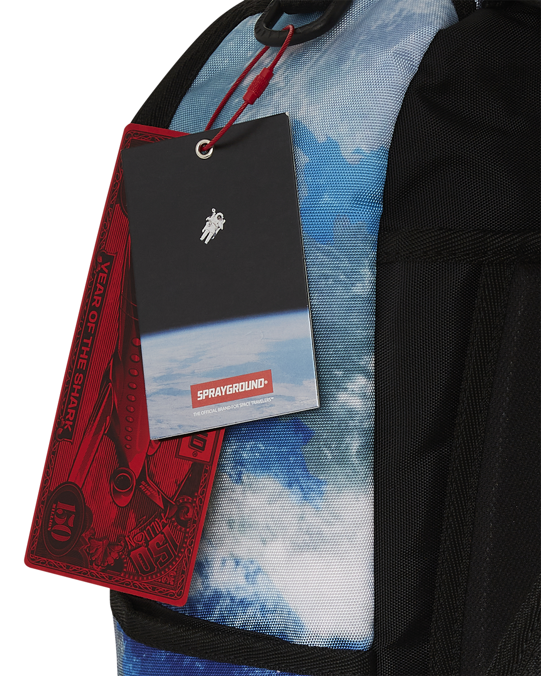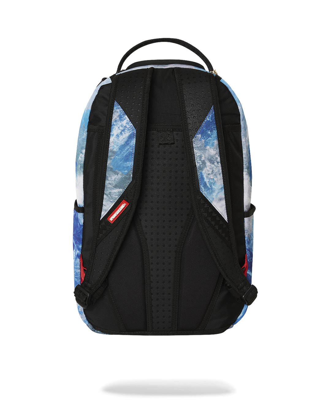 Dimensions: 18" x 6" x 11.5" • Front zipper pocket • Side pockets • Zippered Stash pocket • Separate velour sunglass compartment • Ergonomic mesh back padding • Adjustable Straps for custom sizing • Gold zippers with metal hardware • Metal "Sprayground Authentic" badge • Slide through back sleeve connects to carry-on luggage to free your hands