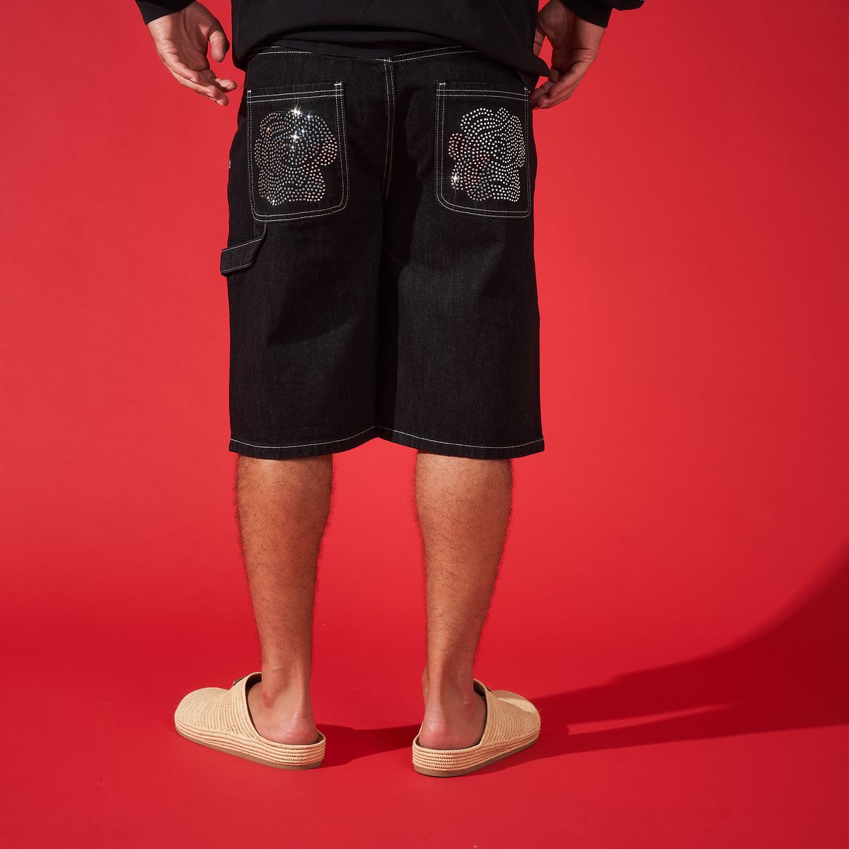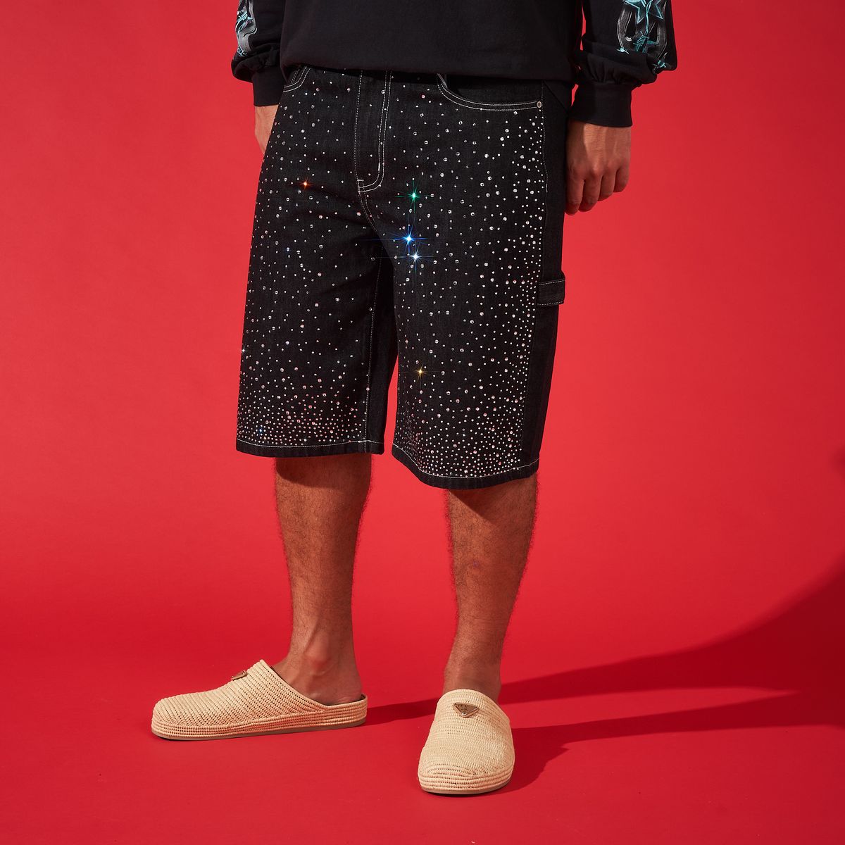 The Duaa Reward denim shorts showcase a stylish blue wash enhanced by an intricate arrangement of crystal rhinestones along the side. Expertly hand-stitched rhinestone detailing is complemented by delicate pearl accents. Made from 100% cotton for comfort and durability.