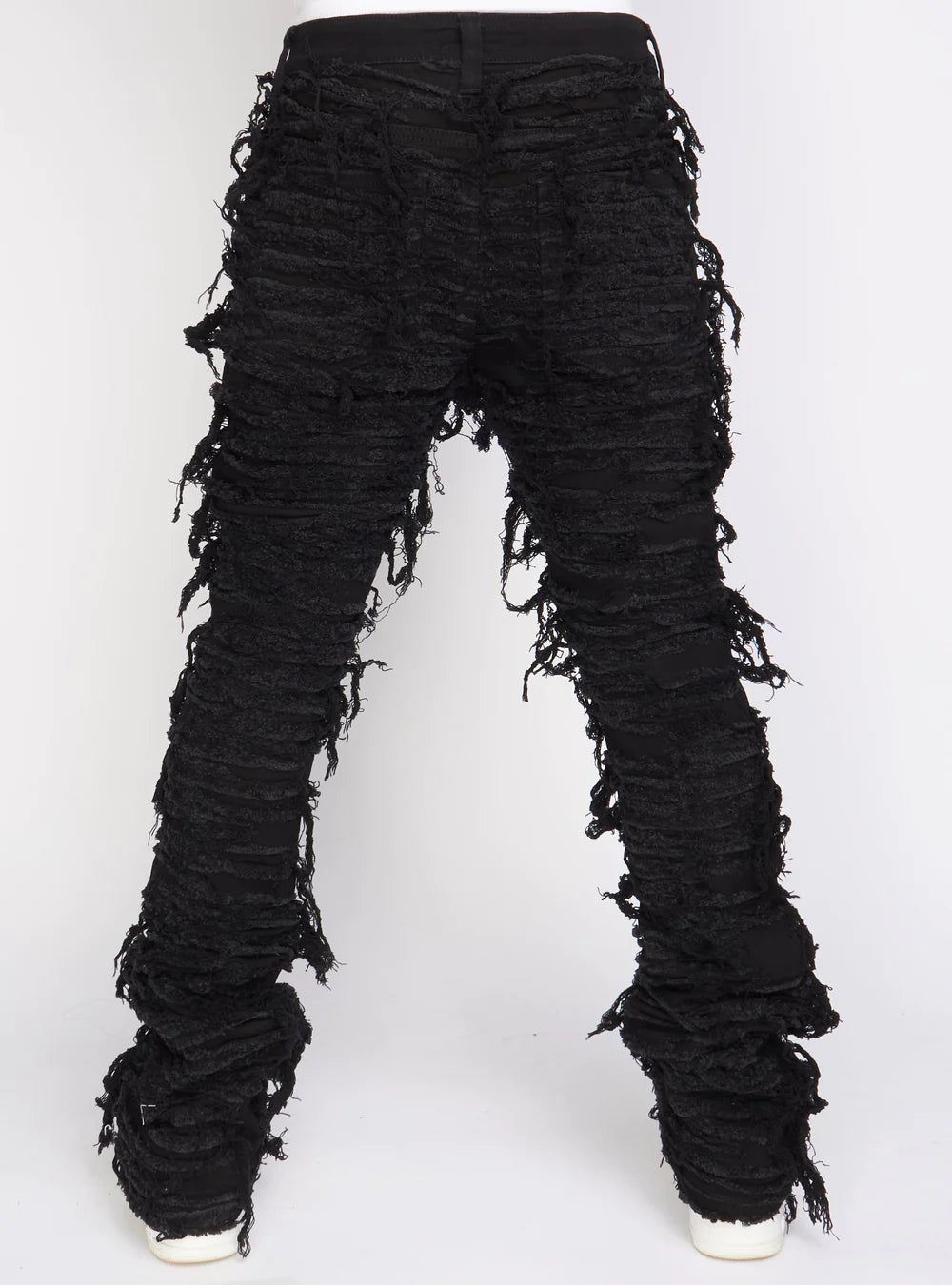 These super stacked heavy distressed jeans feature a unique horizontal fray design. These jeans are crafted from high-quality materials that are designed to stand up to even the toughest wear and tear. these jeans are sure to make a bold statement wherever you go.