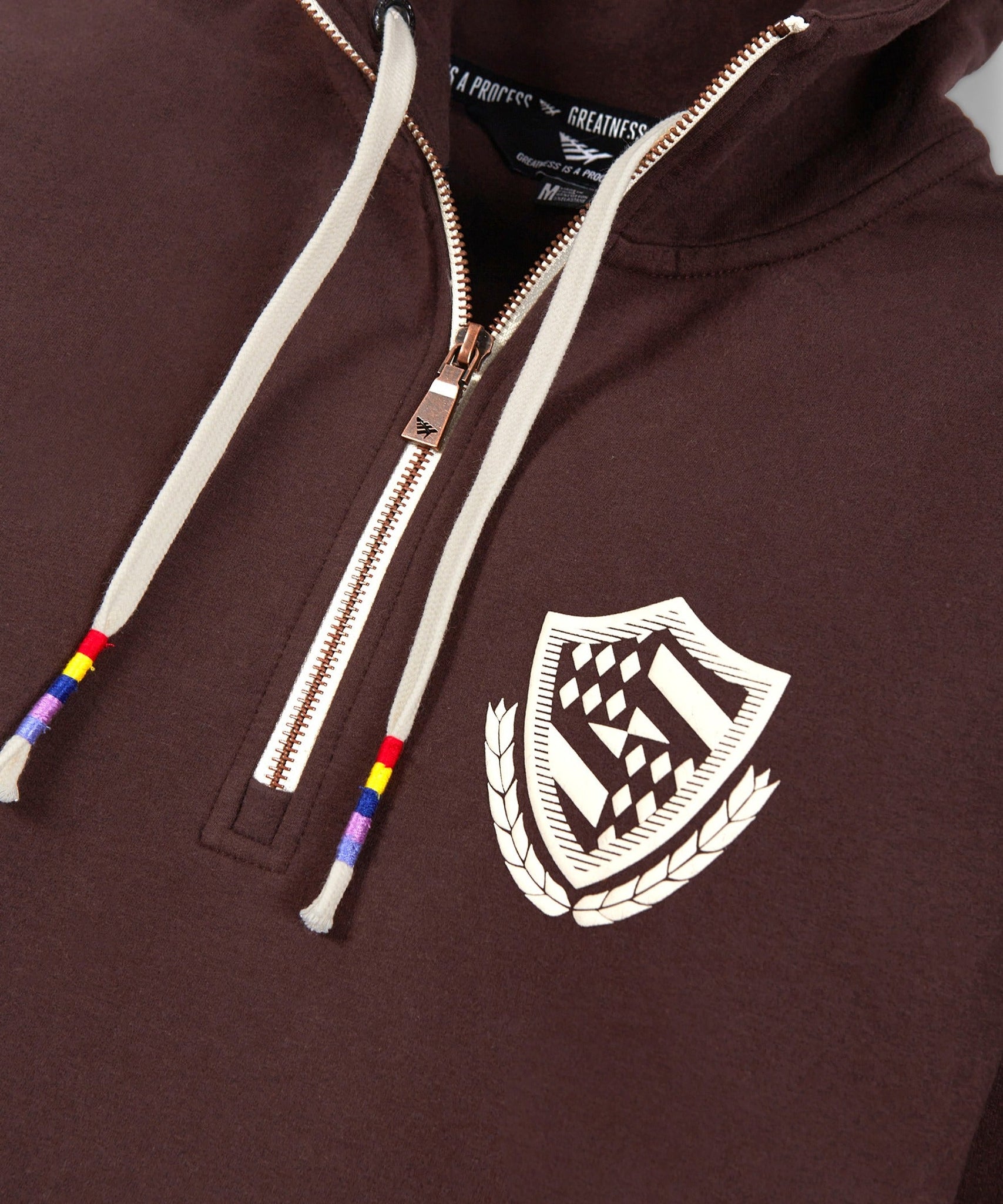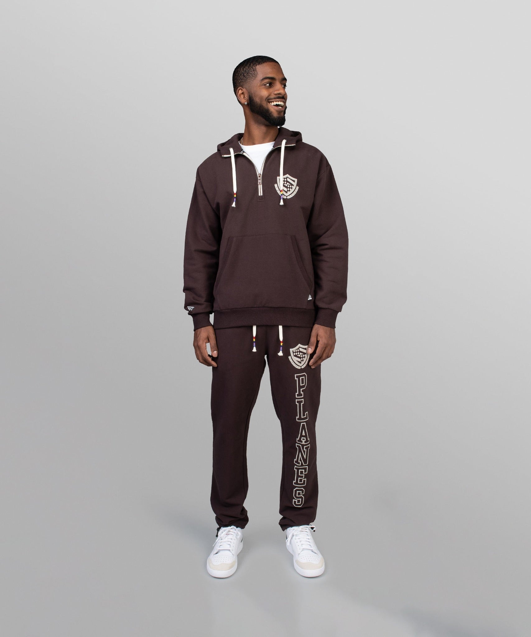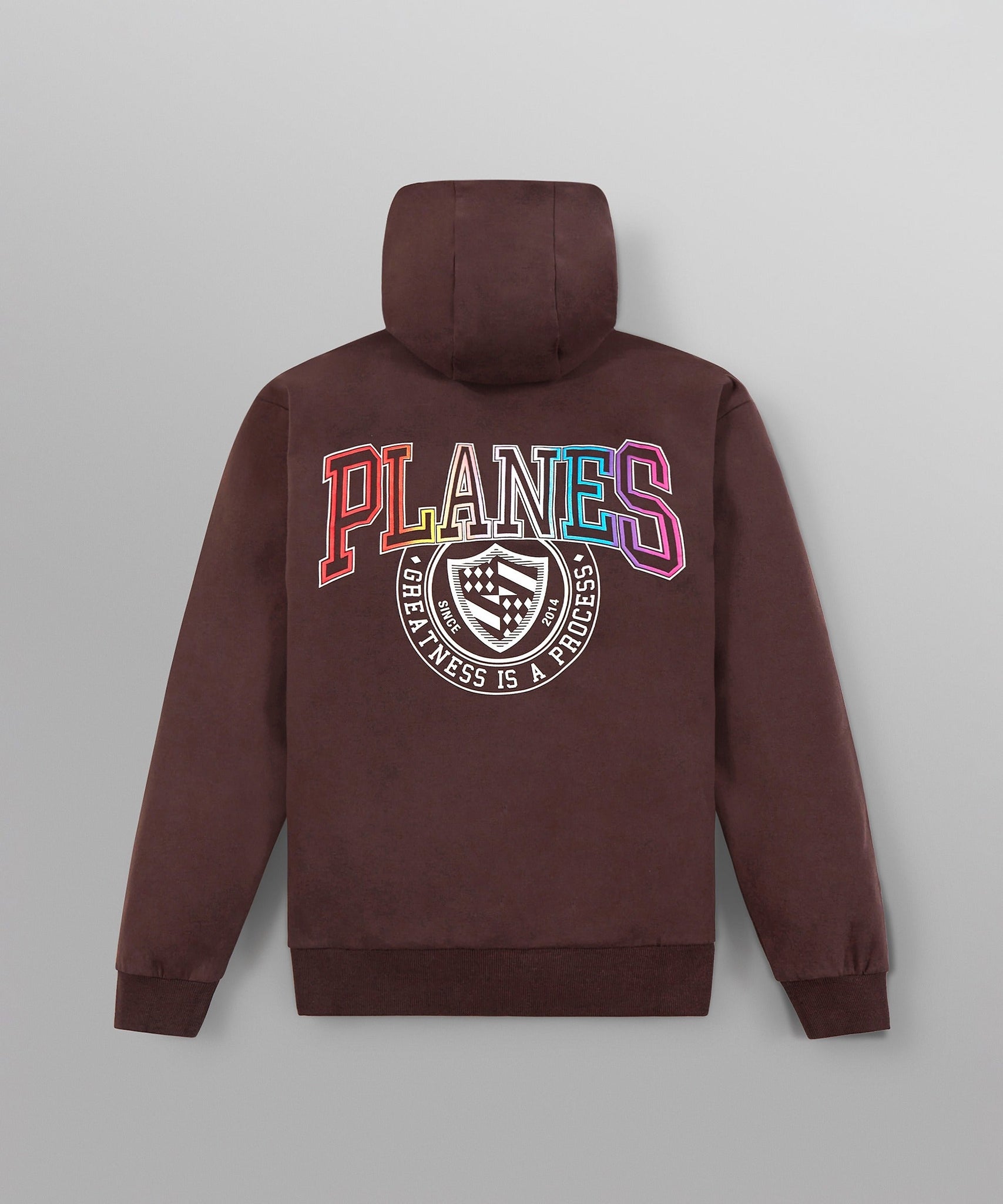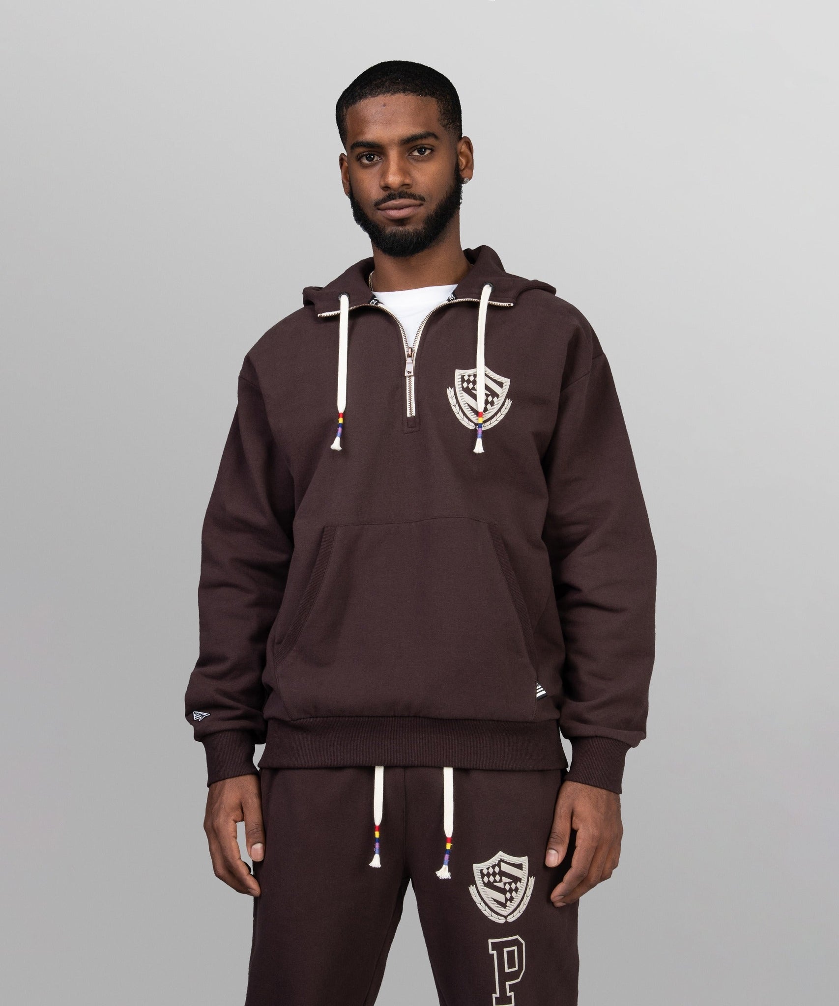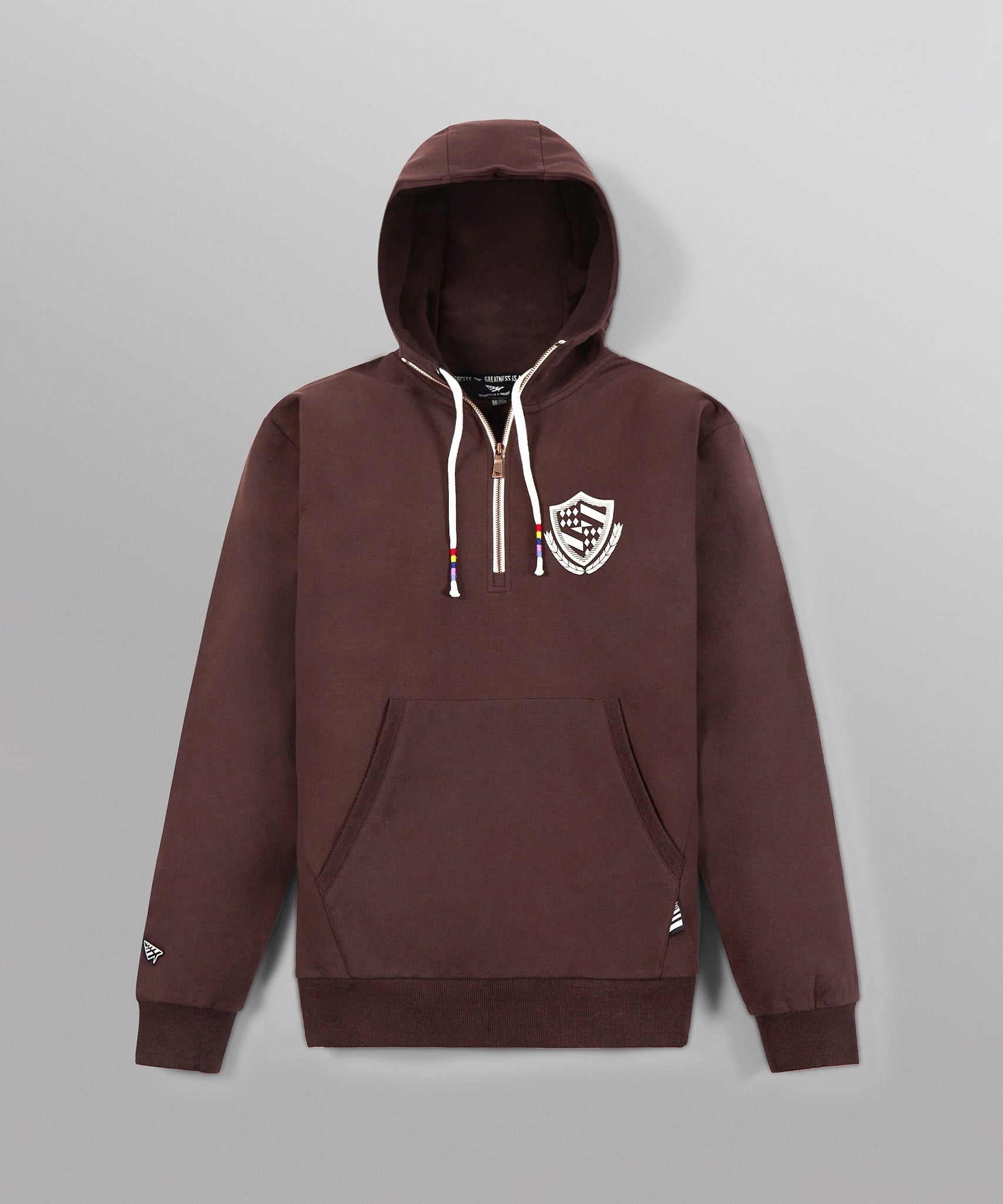 Paper Plane - Collegiate Spectrum Half Zip Drop Shoulder Hoodie - Brown