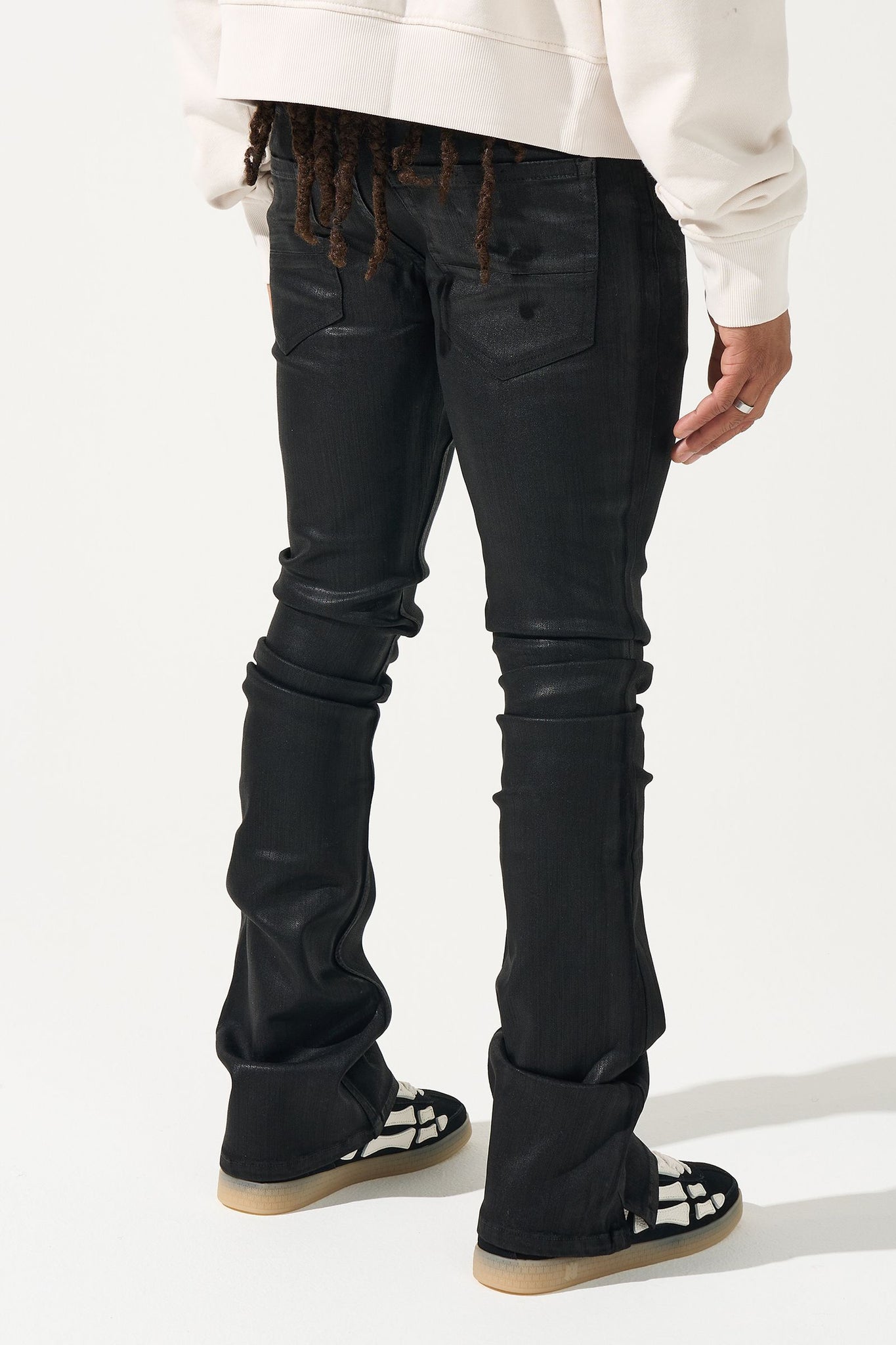 SERENEDE® ONYX Stacked Jeans - Black denim with resin wax coating featuring signature stacked construction.