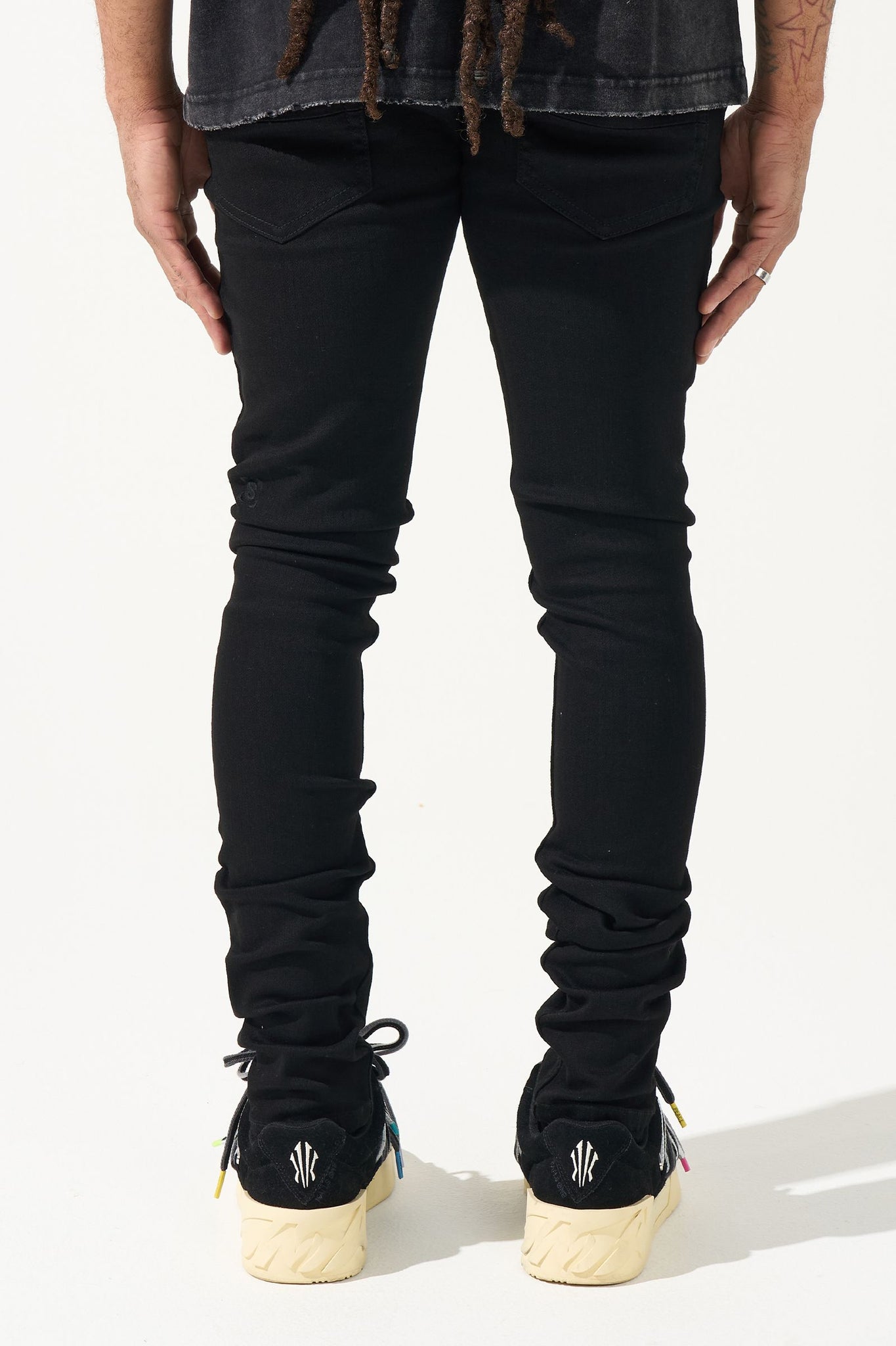 Deep black skinny denim construction