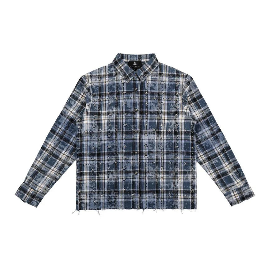 Turn heads with this plaid flannel featuring bold rhinestone “Paper Money” detailing. A perfect mix of street and shine.